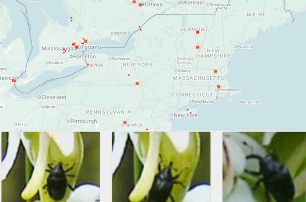 Last summer, Laura Costello, a UVM Field Naturalist Program graduate student working with VCE biologist Desiree Narango, placed automated cameras at White Bog Orchid (Platanthera dilatata), recording over 55 days of potential visitors. The results are still being examined, but already a genus of beetle has been documented for the first time in Vermont, Stethobaris, a genus of flower weevils in the beetle family Curculionidae with about 25 described species.