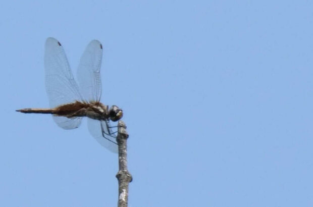 Last August Ben Whittington swung by a marsh he often visits and noticed a dragonfly perched at the very top of a tree. He snapped a few quick photos of it from a distance, uploaded them to iNaturalist Vermont, and with the help of a few Vermont experts, found he had discovered a new dragonfly species for the Vermont Damselfly and Dragonfly Atlas, Striped Saddlebags (Tramea darwini).